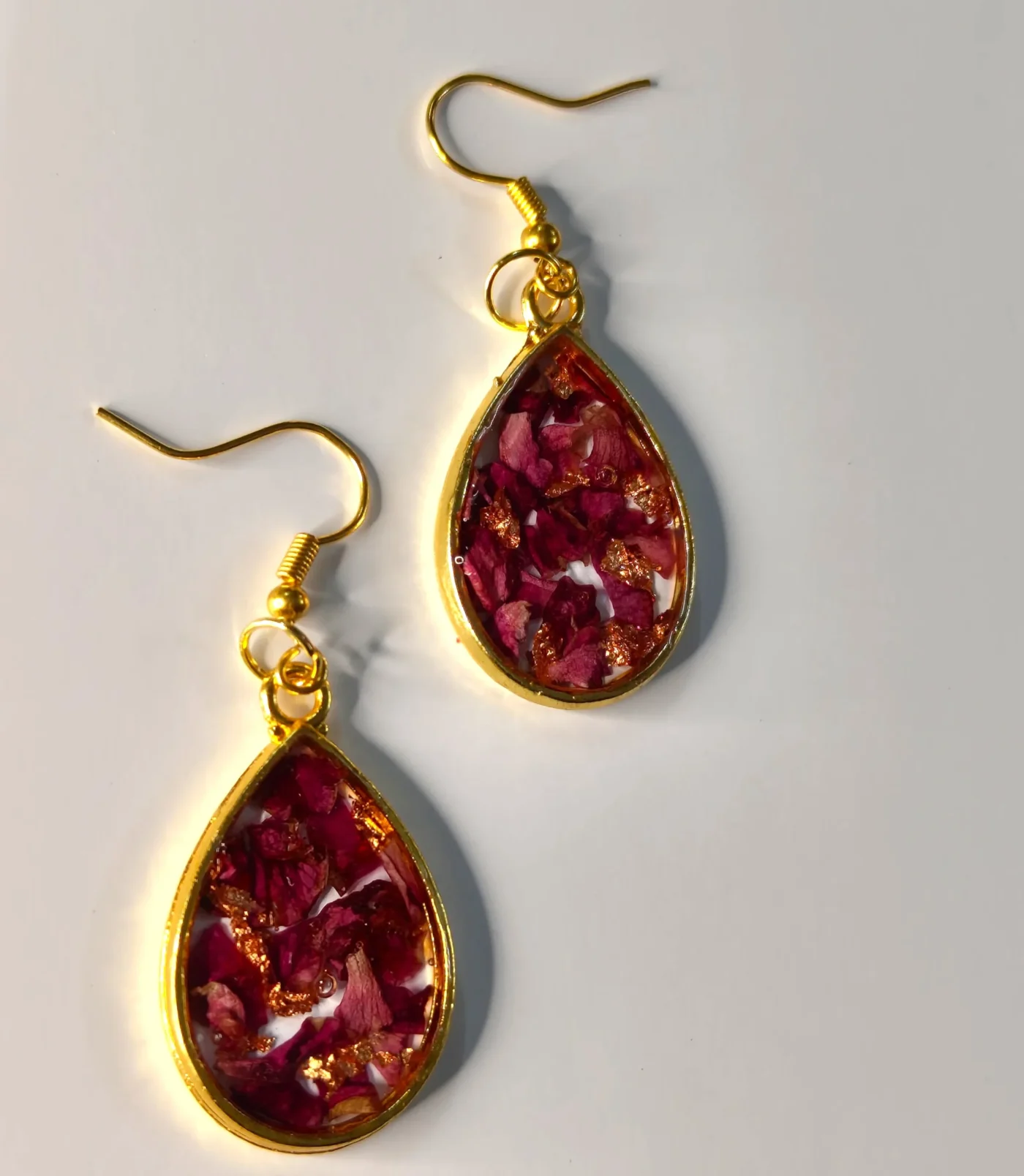 🌹 Drop Shaped Rose Preserved Resin Earrings – Timeless Floral Beauty