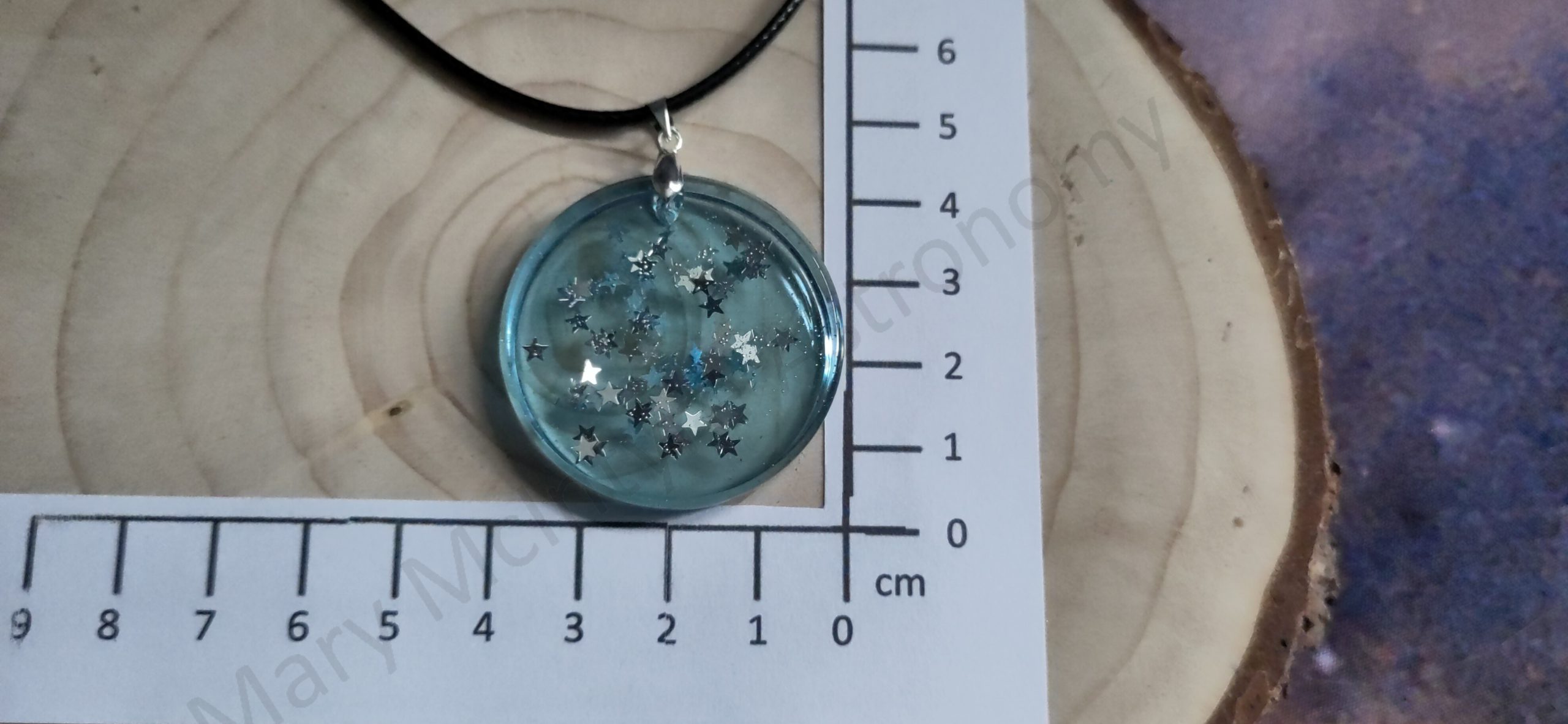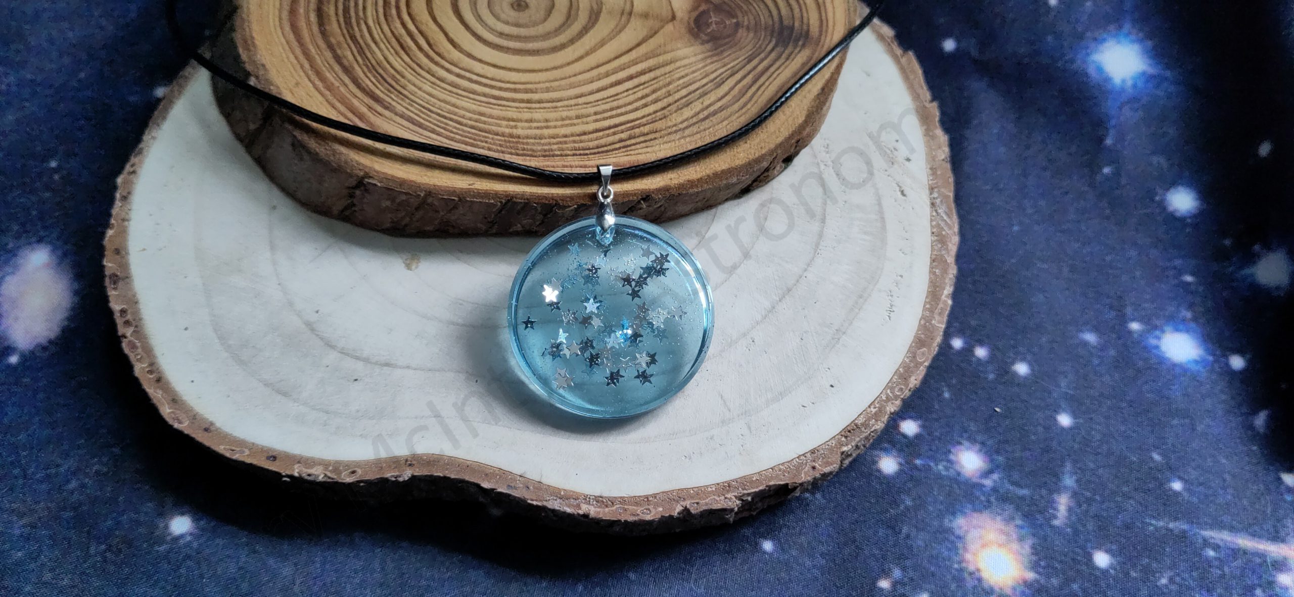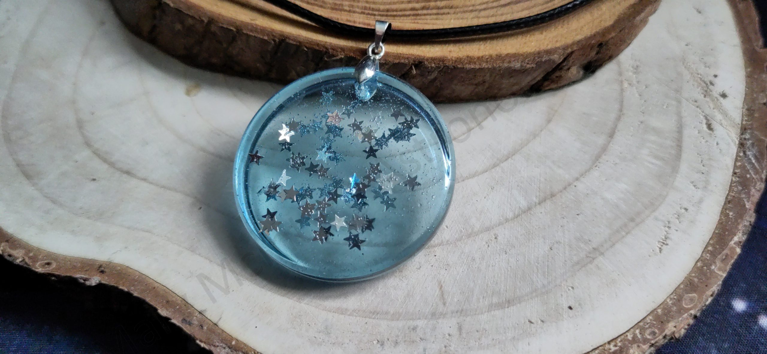 Be the first to review “Handmade Epoxy Resin Pendant – Round Transparent Blue Necklace with Silver Star Glitter Charm”