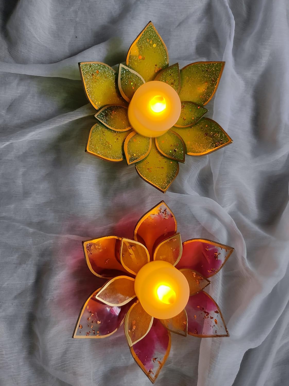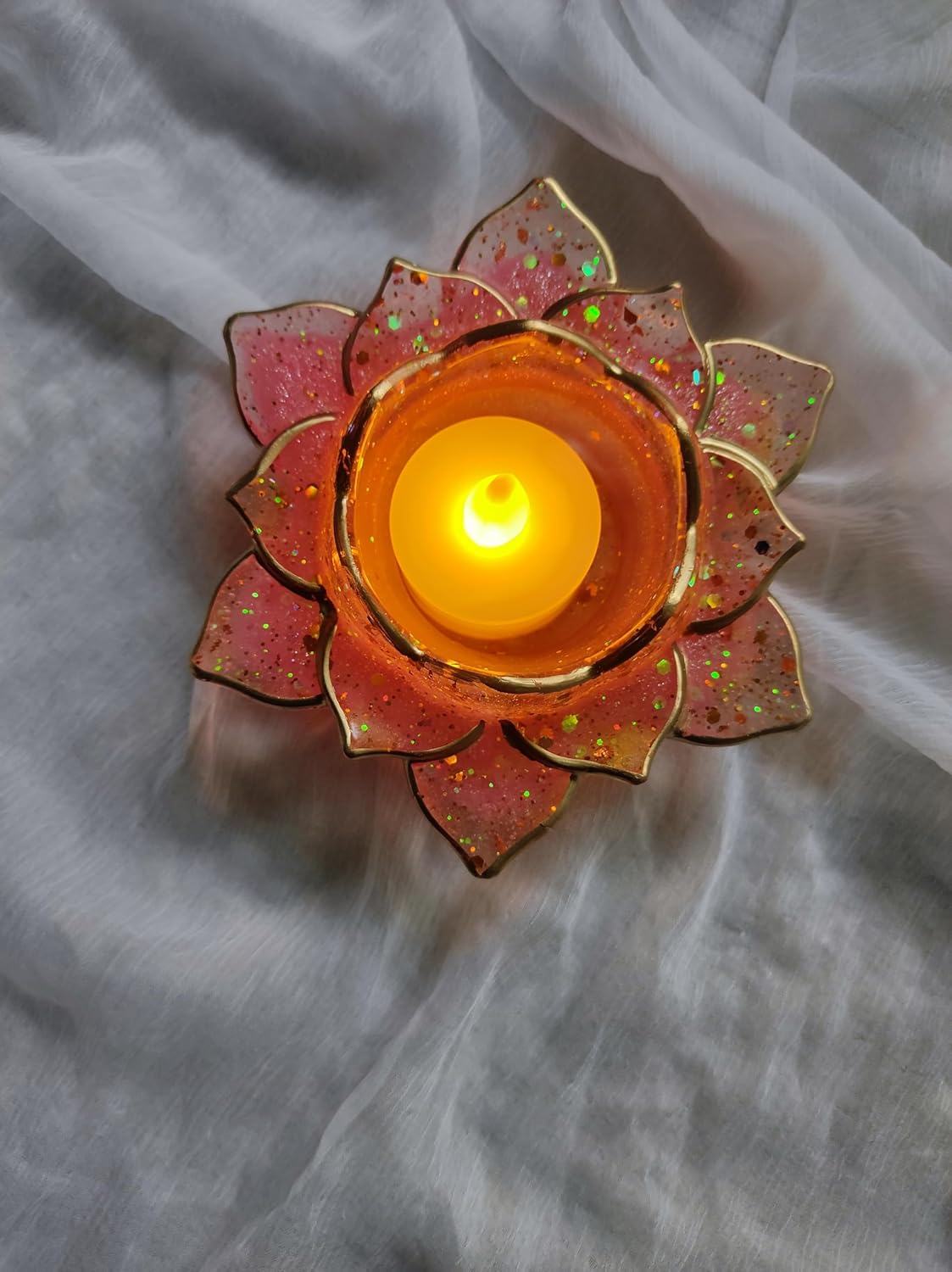 Handmade Lotus Resin Tealight Candle Holder – Festive & Elegant Home Décor